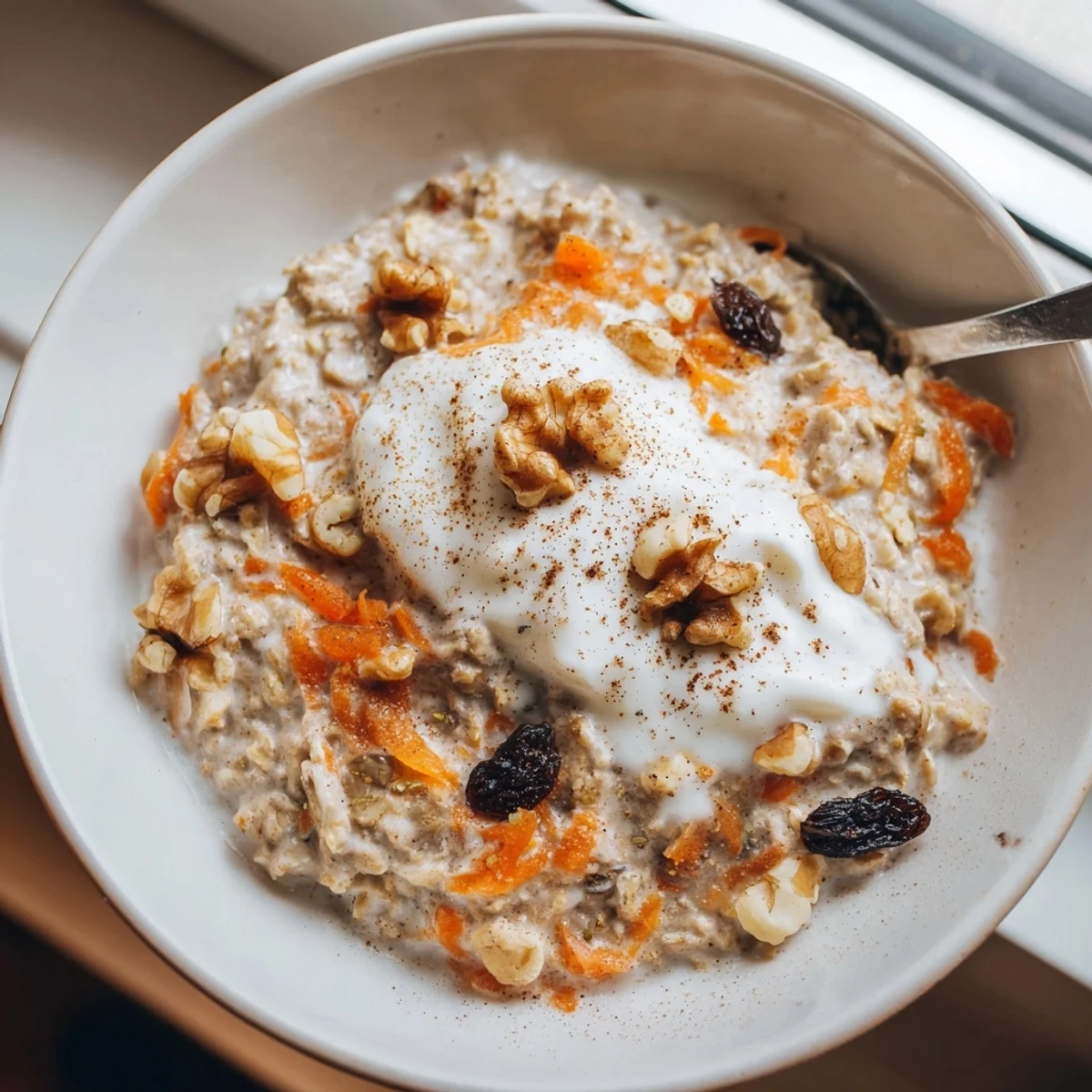 Extra chopped walnuts, a sprinkle of cinnamon, shredded coconut, or a dollop of Greek yogurt all enhance the carrot cake experience. Fresh apple slices or dried pineapple add delicious contrast.