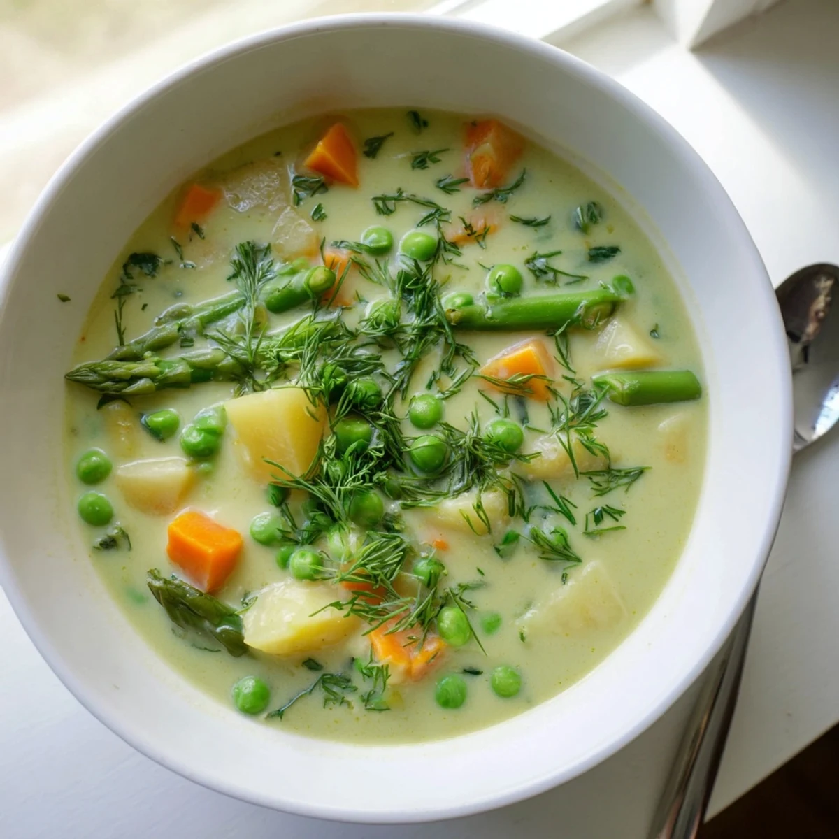 The first time I made this soup, it was a rainy Sunday afternoon and I had a bag of mixed spring vegetables from the farmers market that needed using. I didnt follow a recipe, just kept adding things that felt right together, and my roommate wandered in asking what smelled so incredibly fresh and green. That spontaneous pot has since become the soup I make whenever I need something that feels like a gentle hug in bowl form.