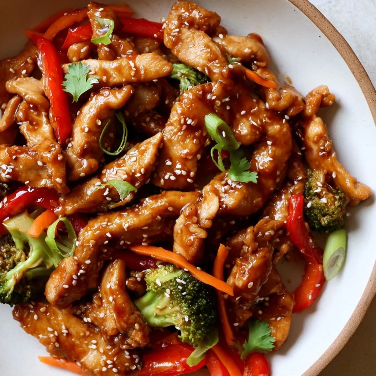 This vibrant Asian-inspired dish brings together tender sliced chicken breast with colorful crisp-tender vegetables. The signature sauce combines soy sauce, nutty sesame oil, honey, and rice vinegar for that perfect balance of salty, sweet, and tangy. Everything cooks together in a hot wok until the sauce thickens and coats each bite beautifully. Ready from start to finish in just 30 minutes, this makes weeknight dinners effortless while still delivering those bold restaurant flavors everyone craves.