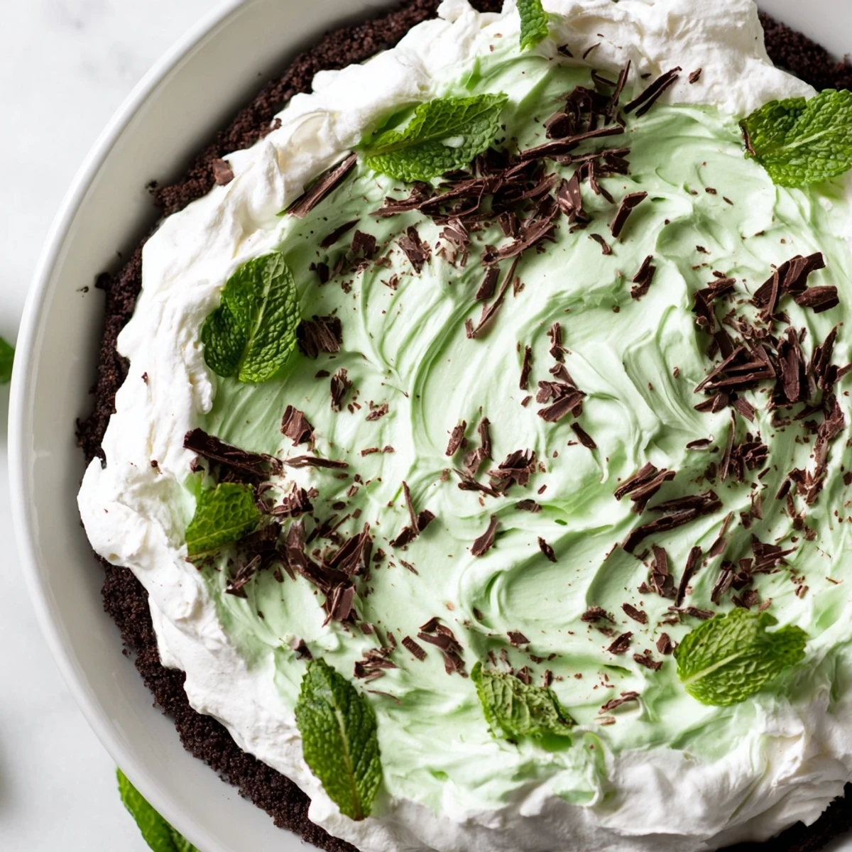 Graham cracker crusts work beautifully if you want a lighter foundation, and the golden color creates pretty contrast against the green filling. For chocolate lovers, swirl some melted chocolate into the whipped cream topping before marbling.