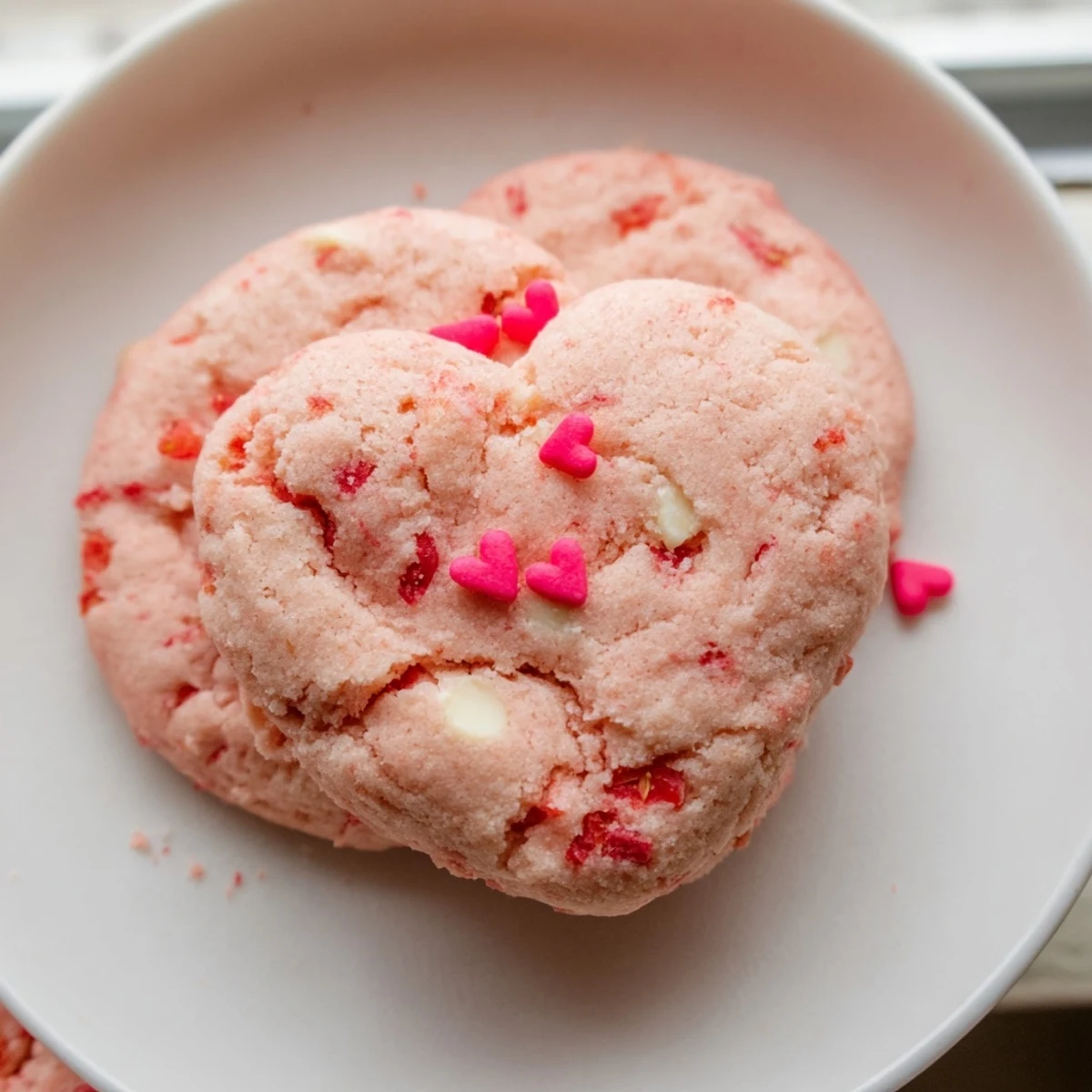 Heart-shaped sprinkles add the finishing touch, making them ideal for classroom parties, gift-giving, or romantic dessert platters. The dough comes together quickly and bakes evenly, producing consistent results every time.